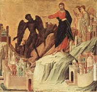 the devil challenges Jesus, tempts Jesus.
